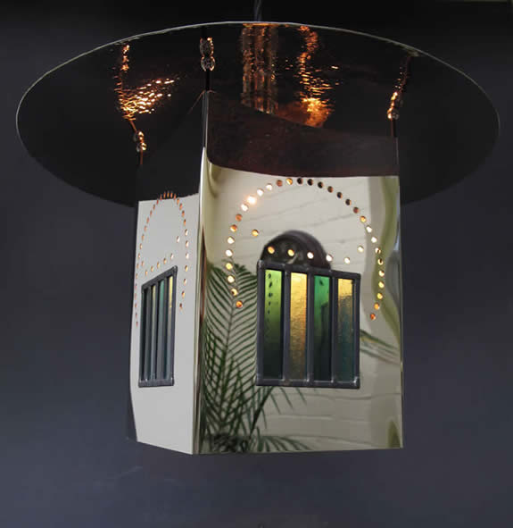 C R Mackintosh Willow Lantern. Nickle silver plate with Similar to those designed c1910 and used in the Willow Tea Rooms - White Dining Room, Ingram Street, Glasgow.