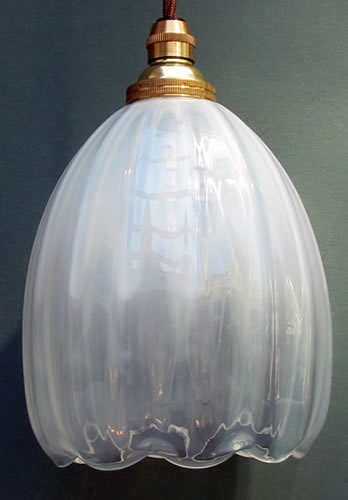 James Powell-Whitefriars Style Art Glass Light Shades. Handmade art glass shades, individually blown in the style of James Powell & Sons - Whitefriars, as specified and used on light fitings designed by Phillip Webb and WAS Benson, Various colours, shapes and sizes available, some from stock and others blown to order. Tulip Shades as shown, Size: 5" long x 4" wide. Price on request Click images for larger pictures |