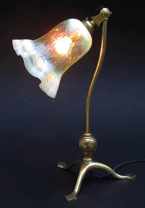 WAS Benson Antique Brass Table Standard Lamp c1895.  No 1132 in Bensons original trade catalogue. Complete with lovely antique Vaseline shade. Working Benson switch, rewired with black antique style silk flex. Designed also to be used as a wall light.